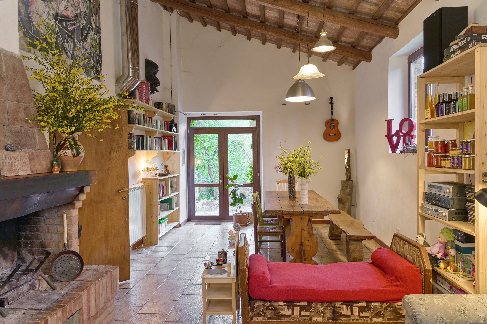 Un grande tavolo per colazioni, pranzi e cene. Divani per rilassarsi, un camino dove scaldarsi d’inverno e una libreria fornita.