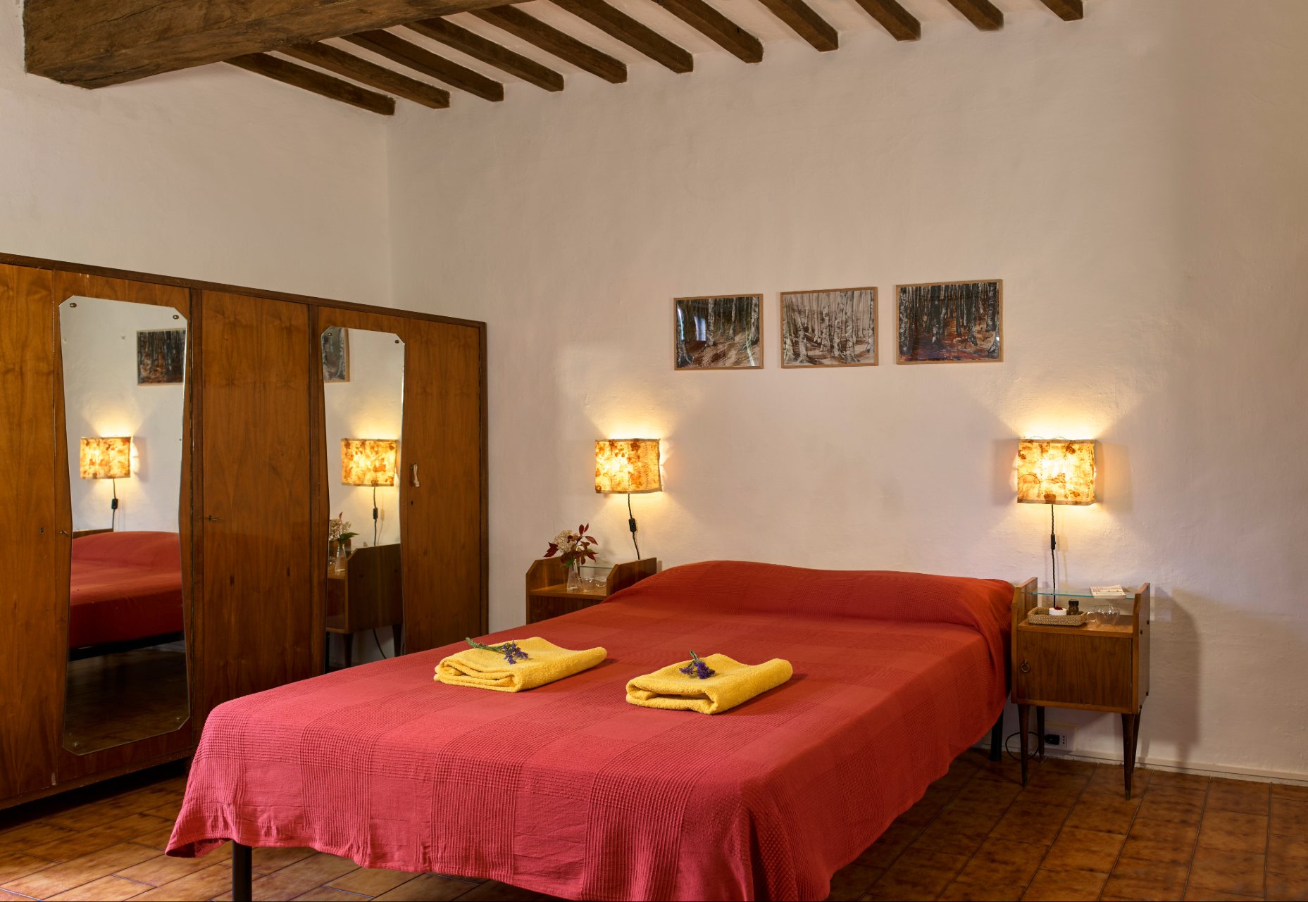 Camera doppia con letto matrimoniale (o 2 letti singoli), bagno privato con doccia.